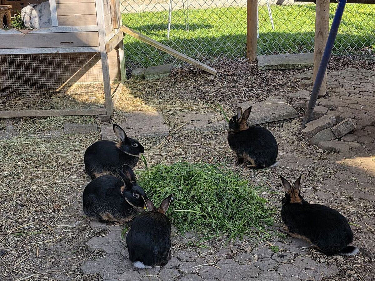 Mit viel Geduld kümmerte sich Marlene darum, dass die fünf langsam ankommen und sich entfalten konnten. Die Entwicklung ist beeindruckend: Aus den Anfangs scheuen, verunsicherten Geschöpfen sind neugierige, lebendige Kaninchen geworden, die zum ersten Mal erfahren, was echte Freiheit bedeutet.